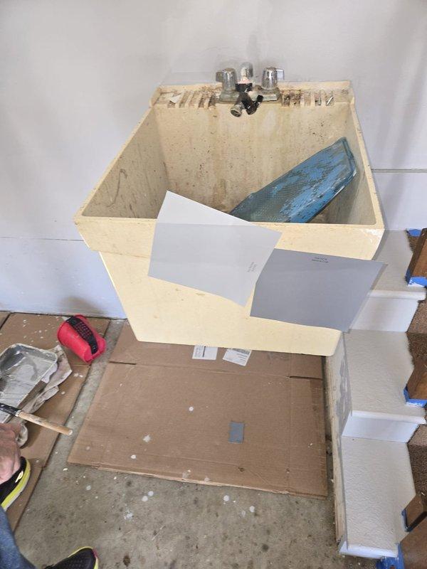 Conducted free estimate for garage utility sink replacement requiring complete removal and reinstallation from supply valves through fixture. Also assessed shower leak reported by homeowner. Photographed existing plumbing configuration including exposed supply lines, shut-off valves, and utility sink basin to document current conditions and facilitate accurate material and labor quotation for complete fixture replacement.
